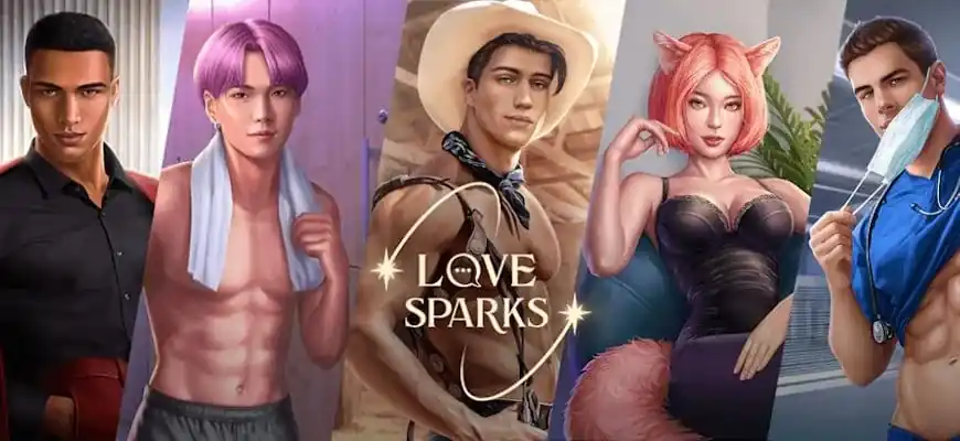 Love Sparks — мобильная романтическая игра с упором на сюжет и выборы в диалогах. Ты проходишь серии (эпизоды), общаешься с персонажами, принимаешь решения и видишь последствия: меняются отношения, открываются новые сцены, иногда — разные концовки.